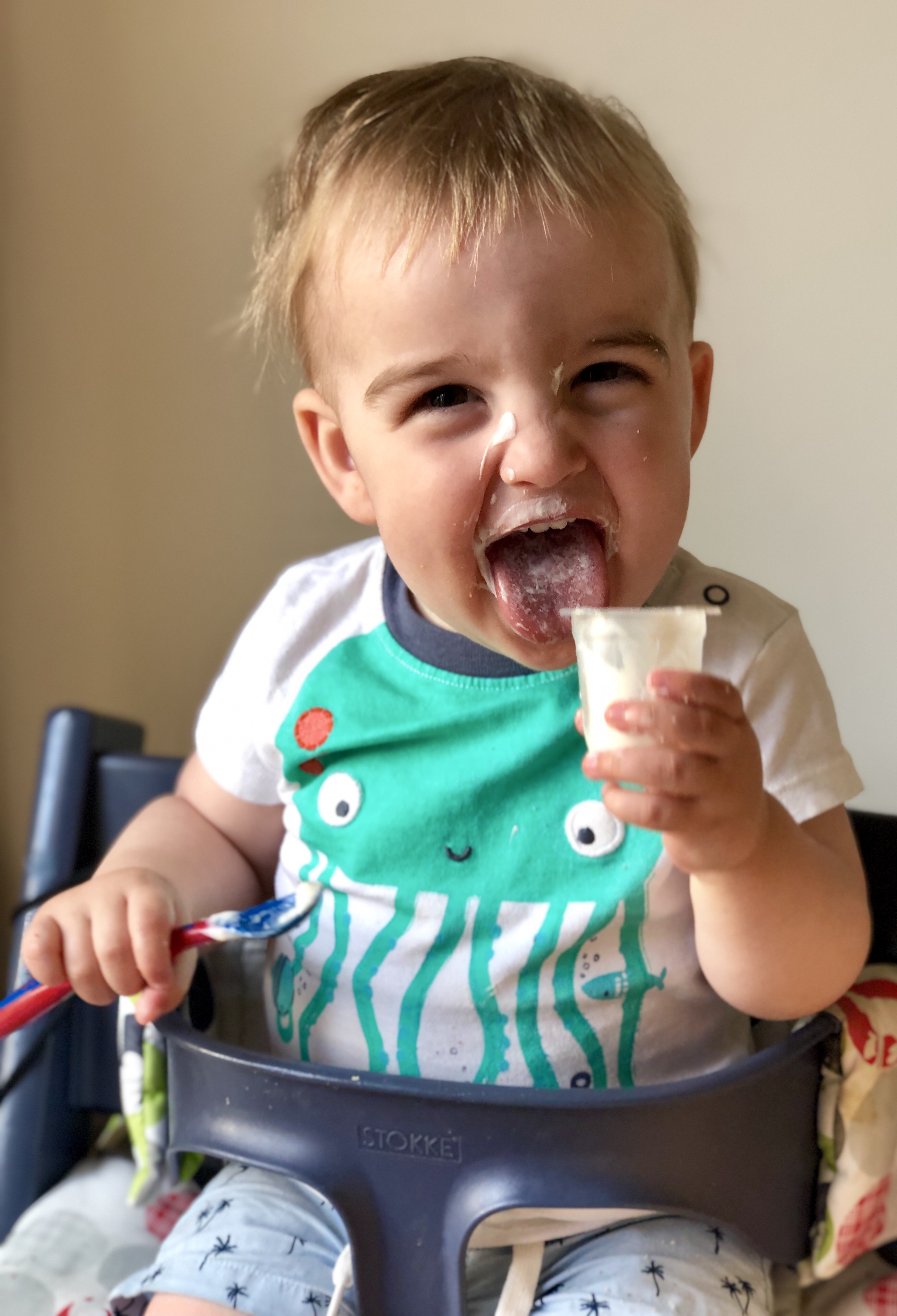 His newly beloved fruit puree!