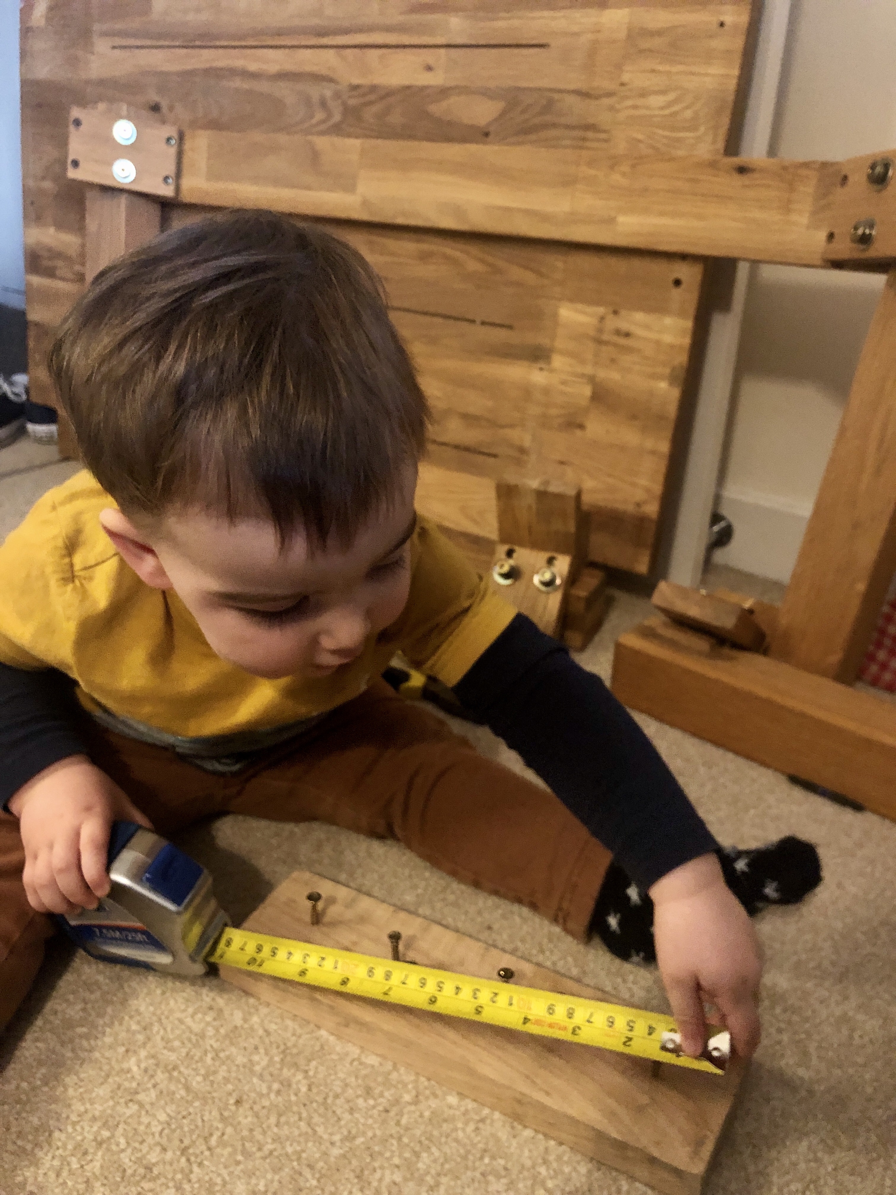 The biggest development over the last few months has to be his new found love of DIY, in particular: sanding, drilling & screw-driving things to ‘help’ his Daddy with jobs around the house. He is careful with his tools has a little wooden box in the kitchen, which he’ll sit with for ages to smooth, attach screws & measure; all while I make dinner. It works for both of us. His Step Sister & Brother think we should set up his own YouTube channel when he’s older called ‘Jamin’s Jobs’ – watch this space! They’re also trying to negotiate a Management Fee of said rising star toddler, although I think I’d pay them a lot of money to manage him when he’s in one of his stubborn, hangry moods. But don’t tell them that though!